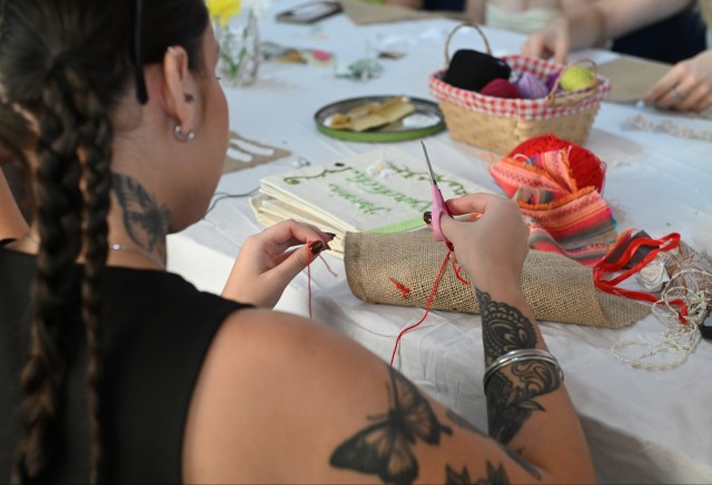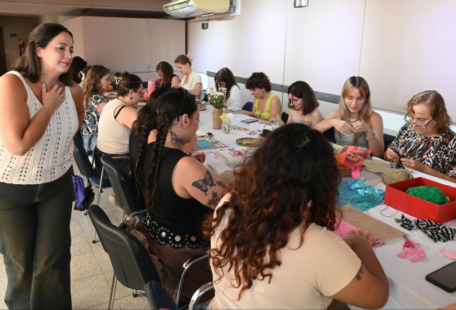 De manera simultánea, en el entrepiso del Foro Cultural se desarrolló “Poesía Bordada”, una actividad coordinada por Soledad Rotman, que abordó la arpillera y el arte textil como herramientas de comunicación colectiva. Durante el encuentro, las y los participantes trabajaron con el bordado como forma de escritura y expresión.