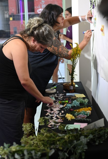 En el hall tuvo lugar la activación sensorial "Placeres y Cuidados. De plantas, mujeres y territorio”, propuesta a cargo de Yael Nadia Viera. La experiencia se organizó en distintos dispositivos que invitaron a recorrer saberes vinculados con el cuidado, el vínculo con las plantas y el territorio. La actividad incluyó un espacio de mural colectivo donde las personas participantes escribieron palabras y frases vinculadas con el cuidado, el placer y el territorio.