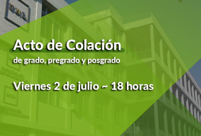 En esta ocasión se compartirá la colación de los egresados 2019 de Ingeniería Agronómica, como así también de la Tecnicatura en Administración de Empresas Agropecuarias, y de la Tecnicatura en Gestión y Producción Apícola; del Doctorado en Ciencias Agrarias; de la Maestría en Cultivos Intensivos; y de la Especialización en Cultivos Intensivos.