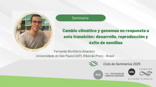 El Instituto de Ciencias Agropecuarias del Litoral (ICiAgro Litoral) y la Facultad de Ciencias Agrarias de la Universidad Nacional del Litoral (FCA-UNL) invitan a toda la comunidad a participar del Seminario: “Cambio climático y genomas en respuesta a esta transición: desarrollo, reproducción y éxito de semillas” , dictado por Fernando Bonifácio Anacleto, de Universidade de São Paulo (USP), Ribeirão Preto - Brasil.