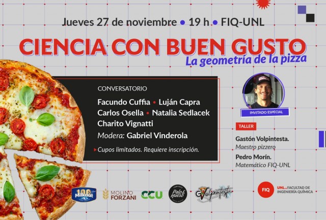 En una nueva edición de este clásico, que se realizará el jueves 27 de noviembre a las 19 en el Octógono FIQ-UNL (PB, Santiago del Estero 2829), el eje estará puesto en “La geometría de la pizza” y en descubrir: ¿qué hay detrás de este alimento?.