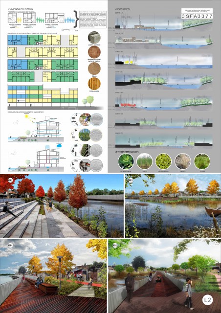 En el veredicto que llevó a que los estudiantes de la FADU recibieran esta Primera Mención, el Jurado destacó que el proyecto se apropia del estero y su orilla, incorporando como espacio público y de uso recreativo un parque lineal que articula lo natural con lo construido y considera áreas verdes como elementos de remediación del ecosistema. Asimismo, subrayaron la propuesta de unidades de vivienda de diferentes dimensiones, con crecimiento progresivo y respuesta a las condiciones climáticas.