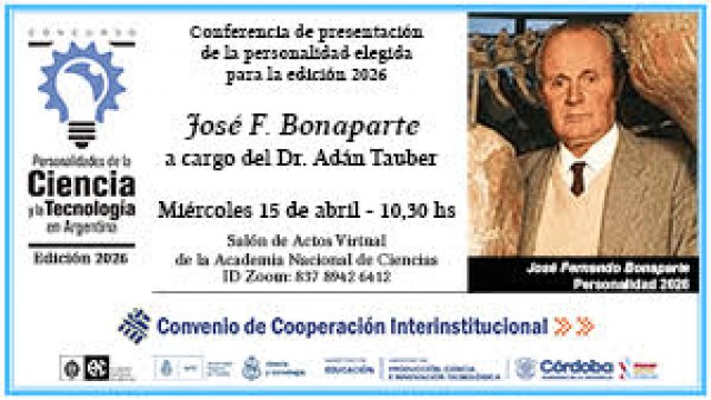 La Comisión Ejecutiva Honoraria del Convenio de Cooperación Interinstitucional entre la Academia Nacional de Ciencias, la Universidad Nacional de Córdoba y los Ministerios de Educación y de Producción, Ciencia e Innovación Tecnológica de Córdoba, invitan a la comunidad UNL a participar de la conferencia José F. Bonaparte, a cargo del Dr. Adán Tauber.