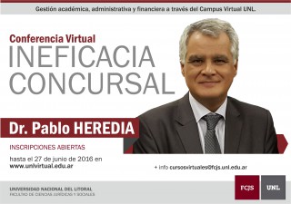 Como preparatorio al Congreso Argentino de Derecho Concursal en 2018, y con el objetivo de acercar la actividad a todos aquellos que no pudieron asistir a la conferencia presencial, la FCJS y UNLVirtual abrirán un aula donde se podrá ver la presentación del profesor Heredia, y participar en un foro de debate.