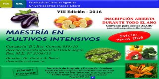 A punto de comenzar su octava cohorte, la Maestría en Cultivos Intensivos es una de las propuestas de posgrado que dicta la Facultad de Ciencias Agrarias (FCA) de la Universidad Nacional del Litoral, y que además incluye el Doctorado en Ciencias Agrarias, la Maestría en Extensión Agropecuaria, y las especialidades en Cultivos Intensivos o en el área de la Producción Lechera.