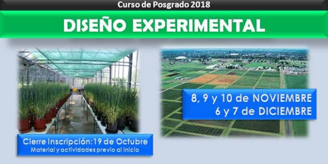 Los días 8, 9 y 10 de noviembre; 6 y 7 de diciembre se desarrollará el curso de posgrado Diseño experimental. Será dictado por el Dr. Agustín Alesso (FCA-UNL). Modalidad presencial y cupos limitados.