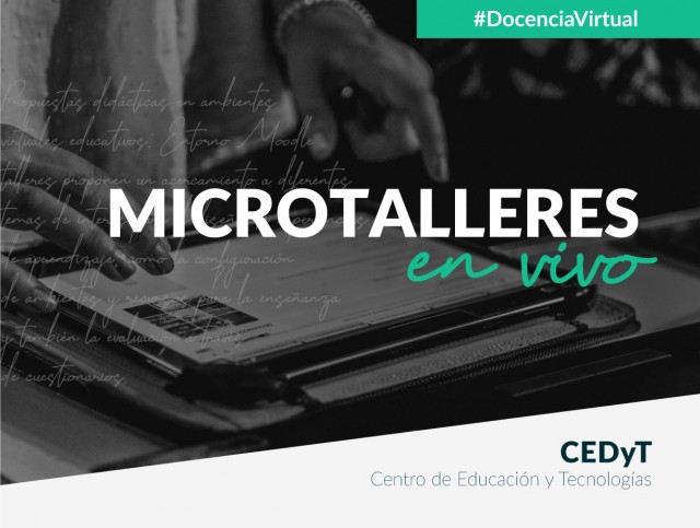 Los Microtalleres en vivo son una serie de siete encuentros sincrónicos que se realizarán por videoconferencia. Se realizarán entre los meses de marzo y abril, y tienen como objetivo pensar el vínculo entre educación y tecnologías. Estarán a cargo de especialistas del equipo del Centro de Educación y Tecnologías de la UNL y destacadas docentes invitadas.
