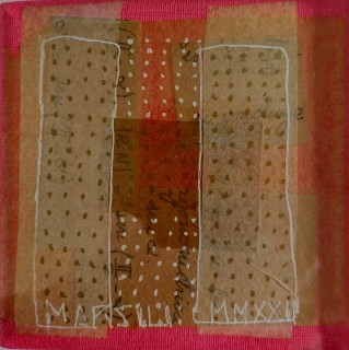 “Para mis obras siempre elijo los elementos básicos de las matemáticas: el punto, la línea, el círculo, el cuadrado y el triángulo, creo que por una cuestión de austeridad”, explica Marsili y agrega “En este caso el proceso creativo tuvo un inicio azaroso, cuando llegaron a mis manos unos pequeños bastidores de 6x6 cm. Comencé con dibujos y collage. Empecé a sentir una gran afinidad por ese formato. Luego recordé el cuadrado mágico de Durero, allí comencé el trabajo de investigación teórica, hasta llegar a dar con las tortugas mágicas chinas. Las obras fueron apareciendo a partir de las lecturas sobre esta figura geométrica”.