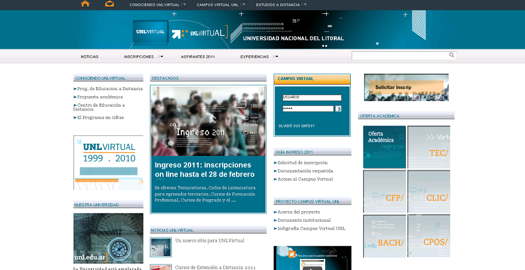 El portal web de UNLVirtual cambió su diseño y entorno a partir de una reconstrucción de las necesidades e intereses de los diferentes actores que se relacionan con la educación a distancia. En esta página web se concentra la información de las propuestas de carreras, cursos y de todo el programa de educación a distancia de la Universidad Nacional del Litoral (UNL).
