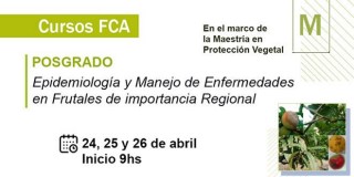 En el marco de la Maestría en Protección Vegetal, del 24 al 26 de abril se dictará el curso de posgrado “ y Manejo de Enfermedades en frutales de importancia regional”. Es presencial.