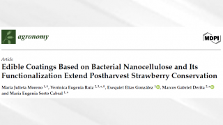 El trabajo fue publicado en la revista Agronomy (MDPI) y presenta el desarrollo de recubrimientos comestibles basados en nanocelulosa bacteriana y su funcionalización, con el objetivo de extender la conservación poscosecha de frutilla, contribuyendo a mejorar la calidad y vida útil del producto.