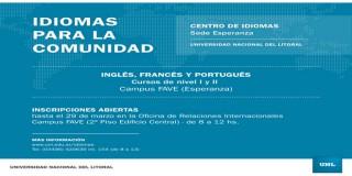 En el caso de la sede Esperanza, los cursos abiertos a la comunidad que se dictarán serán los niveles I y II de inglés, francés y portugués. El nivel I se cursará los martes y jueves de 20 a 22, mientras que el nivel II los martes y jueves de 18 a 20. Las clases tendrán lugar en el Campus FAVE y comenzarán el 4 de abril.