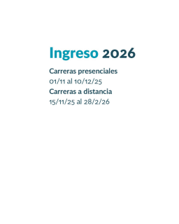 Para las CARRERAS PRESENCIALES las inscripciones serán desde el 1 de noviembre hasta el 10 de diciembre de 2025, y se realizan de manera completamente online, a través de la siguiente página: INGRESO UNL 2026. Allí simplemente seguí la guía paso a paso y podrás fácilmente inscribirte a la carrera que elijas. En esta web encontrarás también la información sobre cursos de articulación, materiales de estudio, becas y más. La oferta completa de carreras de UNL en modalidad presencial se puede consultar en el siguiente buscador.