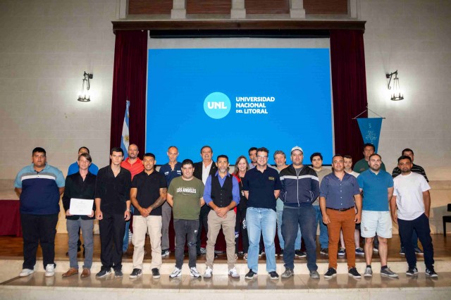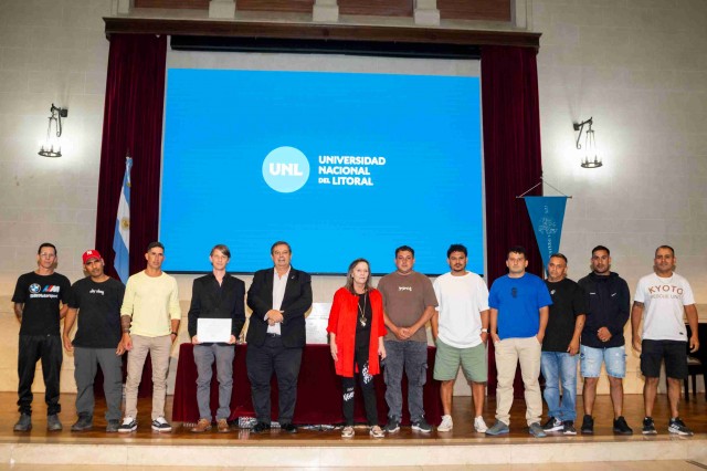 En el Paraninfo de la UNL se realizó la entrega de diplomas a quienes formaron parte del Programa de Certificación de Competencias Laborales para los roles de costura textil básica, corte y confección, mozo nivel básico, pintor, soldador y electricista.