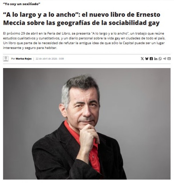 Para conocer más detalles, visite Página 12: https://www.pagina12.com.ar/2026/04/22/a-lo-largo-y-a-lo-ancho-el-nuevo-libro-de-ernesto-meccia-sobre-las-geografias-de-la-sociabilidad-gay/
