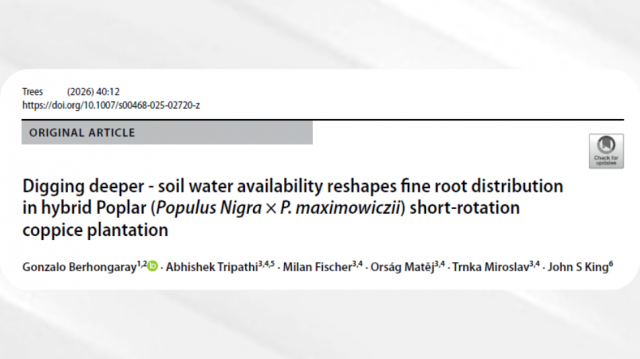 “Digging deeper – soil water availability reshapes fine root distribution in hybrid poplar (Populus nigra × P. maximowiczii) short-rotation coppice plantation”, publicado en la revista científica Trees.