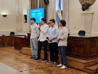 El primer premio fue para Hykue. Se trata de un dispositivo robótico autónomo de inspección interna, bioinspirado en los Quilópodos, diseñado para navegar por las tuberías de agua potable y localizar fugas con precisión centimétrica. Utiliza un sistema modular de sonar de ultrasonido (SAR) para escanear las paredes internas, y mediante un software con inteligencia artificial, analiza en tiempo real los patrones de eco para diferenciar fisuras de otras anomalías. El equipo está integrado por Santiago Scalzo, Milagros Zarina Viera, Constanza Conde, Mateo Jose Dayub y Alma Ferraris.