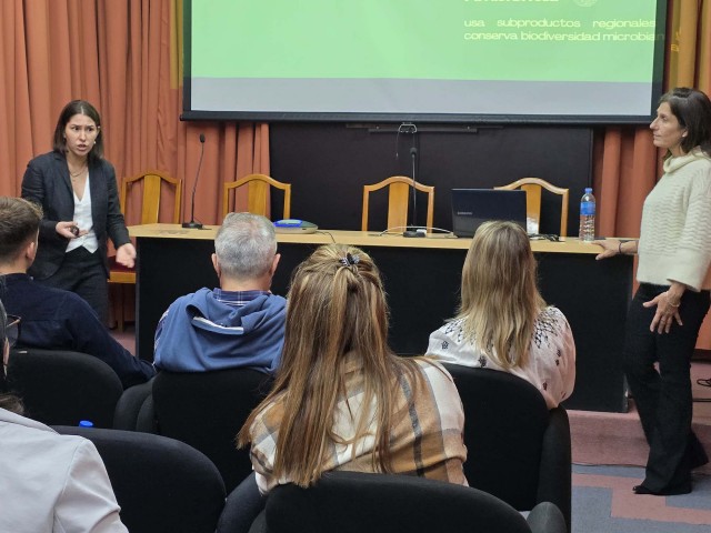 Por su parte, el proyecto Fungo está integrado por María Delfina Bocco Gianello y Evelyn Noemí Araujo Sola. El emprendimiento se centra en la fortificación de hongos comestibles (gírgolas sobre todo) con vitamina B12. De esta manera, proponen una innovadora fuente de B12 de origen no animal, cubriendo una necesidad nutricional clave en dietas vegetarianas y/o veganas. Delfina y Evelyn agradecieron la oportunidad que tuvieron de participar para poder desarrollar su idea y proyectar cómo continuar trabajando.