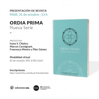 El martes 31 de octubre de 2023, de manera virtual, se realizó el relanzamiento de la revista Ordia Prima. La publicación tiene como temática central a la antigüedad grecolatina.