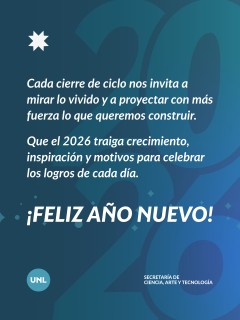 Desde la Secretaría de Ciencia, Arte y Tecnología de la UNL, agradecemos a quienes forman parte de este camino y renuevan, cada día, el compromiso con el desarrollo académico, científico y cultural.