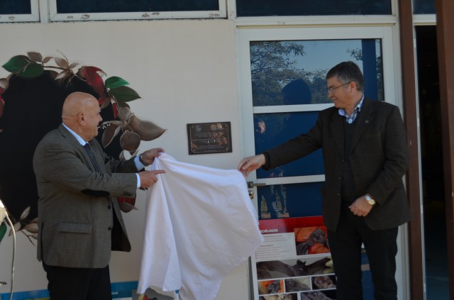 El ministro de Medio Ambiente de la provincia, Jacinto Speranza, y el decano de la FICH, Raúl Pedraza, fueron quienes descubrieron la placa que declara a la Reserva Natural de la UNL como área de importancia para la Conservación de Murciélagos en Latinoamérica.