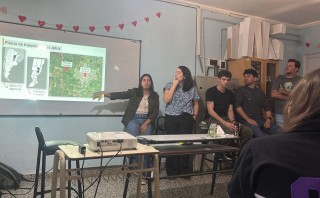 El taller estuvo a cargo de docentes-investigadores, becarias del CONICET y estudiantes: Javier Gómez, Ayrton Díaz y Santiago Gariglio, del Departamento de Geografía, junto a Luciana Regaldo, Natalí Romero y Lucía Giménez, del Laboratorio de Ecotoxicología del Departamento de Ciencias Naturales.