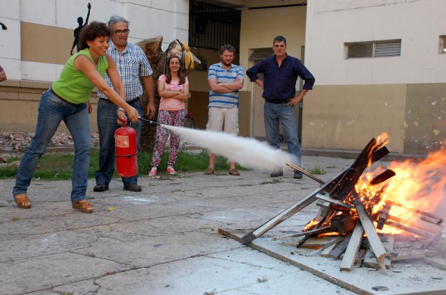 Otra de las actividades realizadas en la Semana de la Seguridad, fue una capacitación teórico-práctica en manejo de extintores de incendio, a cargo del Ing. Hugo Notaro, asesor externo en Higiene y Seguridad de la UNL. La misma se desarrolló en dos turnos, por la mañana y por la tarde, en el patio de la Escuela Industrial Superior anexa a FIQ.