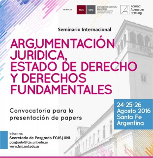 La Facultad de Ciencias Jurídicas y Sociales (FCJS) de la Universidad Nacional del Litoral (UNL), con el apoyo de la Fundación Konrad Adenauer Stiftung, organiza el Seminario Internacional de Argumentación Jurídica, Estado de Derecho y Derechos Fundamentales.