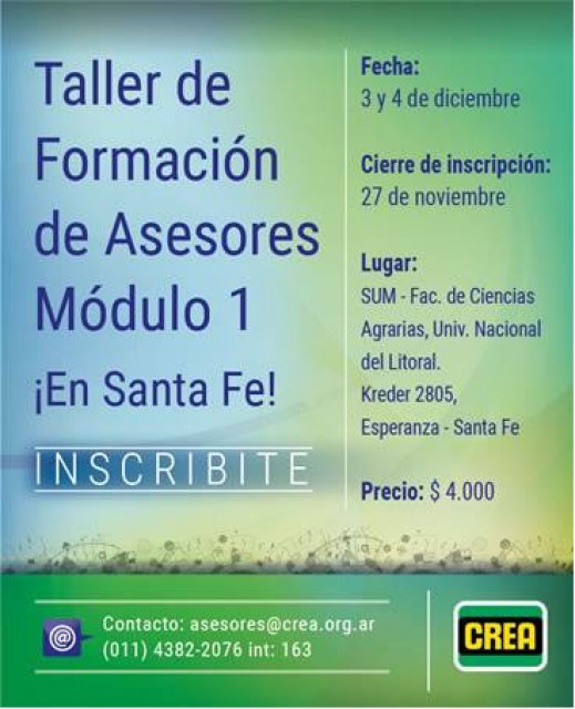 Los días 3 y 4 de diciembre se desarrollará una nueva instancia del Módulo 1 del Taller de formación de Asesores Crea.