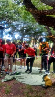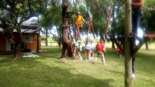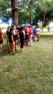Además practicaron senderismo con avistaje de aves, arquería, juegos aéreos, tirolesa, fútbol, voley, juegos nocturnos y cerraron la noche con un gran fogón.