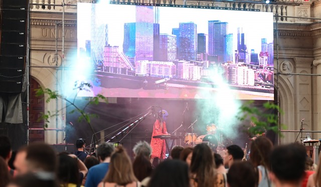 Música, ferias, muestras y actividades para infancias fueron las propuestas que se desarrollaron en la Manzana Histórica. En el cierre, Santiago Motorizado hizo vibrar al público con un show que comenzó con la frase "Aguante la Universidad pública!".