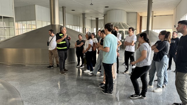 A continuación esa misma tarde, el grupo fue recibido por el Ing. Roberto Zinícola en la Planta de CCU (Compañias Cerveceras Unidas). Inicialmente conocieron sobre los orígenes de la empresa fundada en 1912 por el inmigrante Otto Schneider en la ciudad de Santa Fe, recorriendo la Casa de la Cervecería Santa Fe, el museo que la empresa tiene en las construcciones originales del complejo industrial fundacional. Actualmente la vieja "Cervecería Santa Fe" es parte de una Multinacional (CCU), que produce en Santa Fe, además de las tradicionales cervezas Santa Fe y Schneider, otras marcas nacionales tales como Palermo, Norte, Córdoba e Imperial; e internacionales como Heineken, Miller, Grolsch y, mas recientemente, Blue Moon. Luego las y los estudiantes conocieron el sector de cocina de los ingredientes para la producción de cerveza, donde pudieron conocer además sobre los diversos procesos involucrados, efluentes y sistematización. Luego se realizó una recorrida por la zona de limpieza de envases, y la planta de producción. Finalmente conocieron los laboratorios de la empresa.