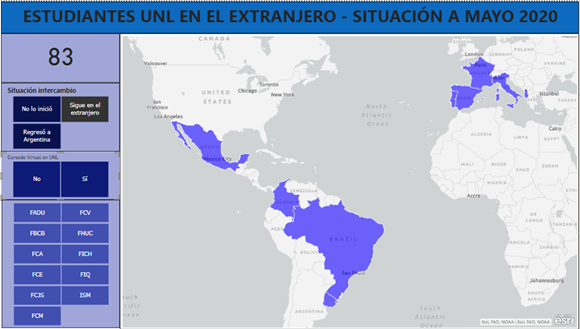 Captura de un informe interactivo realizado en el área de Internacionalización UNL.