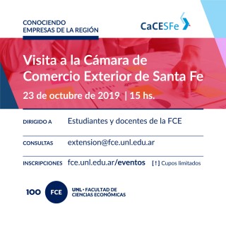 En el marco del ciclo Conociendo Empresas e Instituciones de la Región, invitamos a estudiantes y docentes a visitar la Cámara de Comercio Exterior de Santa Fe ubicada en el edifico de la Bolsa de Comercio de Santa Fe.