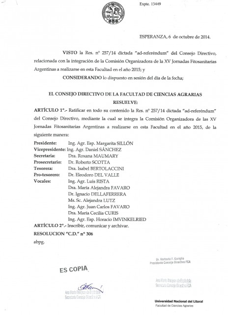 Del 7 al 9 de octubre de 2015 se llevarán a cabo las XV Jornadas Fitosanitarias Argentinas, bajo el lema “Desafíos fitosanitarios actuales y futuros” organizadas por Universidad Nacional del Litoral y Facultad de Ciencias Agrarias.